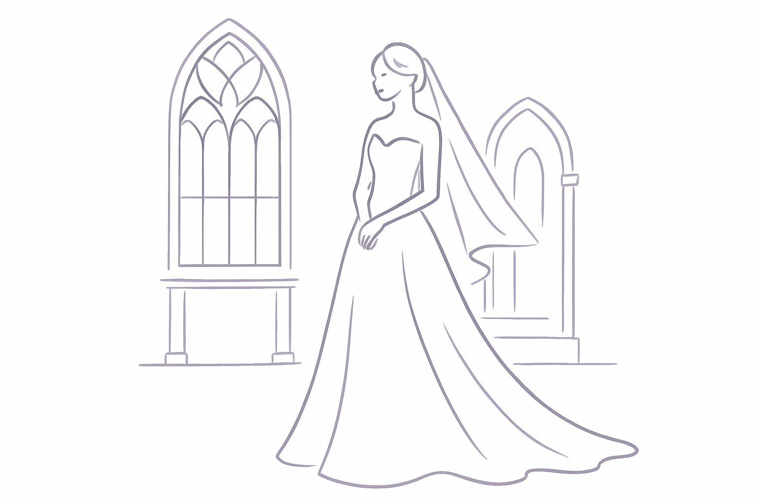 マーメイドやスレンダーラインのドレスは縦ラインを強調するため、背筋をしっかり伸ばして立つことが重要。