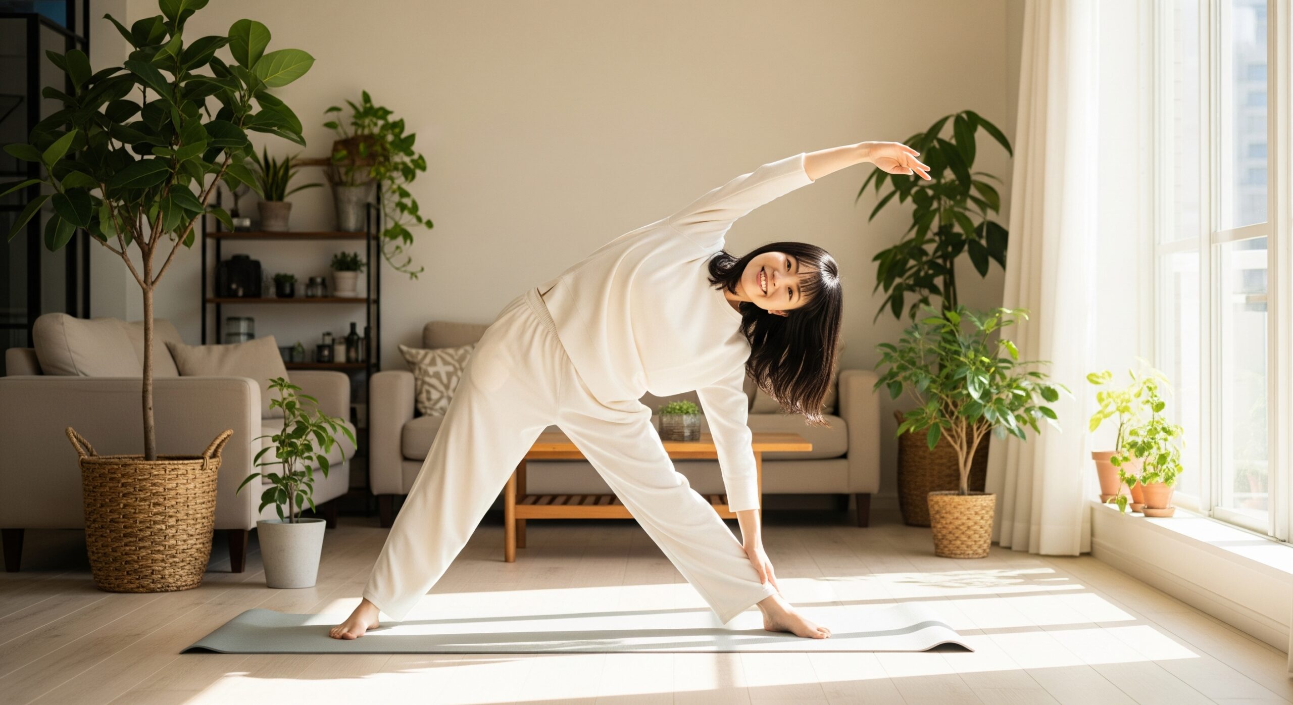 ジムに通わなくても、ヨガマット1枚あれば十分に引き締められます。自重トレーニングやヨガ、ストレッチなど、短時間でも効果的な運動を習慣にすることで、脂肪燃焼と筋力アップを同時に実現できます。